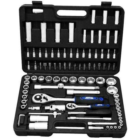 Krova készlet - bitek, feltét és egyéb kéziszerszámok a csomagban, koffer a termék része, 94 darabos készlet, 1/4" és 1/2" négyszögletű méret, négyszögletű fejprofil, műanyag fogantyú, tömege 6,16 kg A hatékony Magg krova készlet 94 alap darabból áll. A készlet része egy 1/4" és 1/2" -os négyszög. A négyszög profilú fej speciális és szervizfeladatokra készült. A műanyag markolat könnyedséget és ké