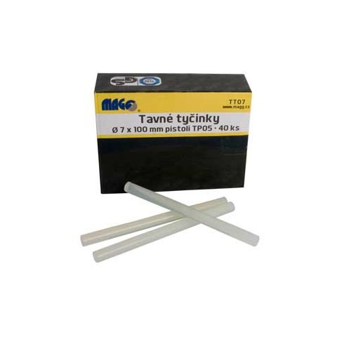 Ragasztópisztoly rúd 7 mm - alkalmas fa, karton, műanyag, üveg, kerámia és kő ragasztására, hossza 100 mm, 40 darabos csomag A kiváló minőségű MAGG 7x100mm ragasztórúd TP05 Pisztolyhoz, 40 db alapvető jellemzői A tartós Magg ragasztópisztoly rúd a ragasztópisztoly kulcsfontosságú eleme Megfelelő fa, karton, műanyag, üveg, k
