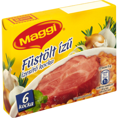 Összetevők: Jódozott só, Pálmazsír (pálmazsír, antioxidáns: rozmaringkivonat), Ízfokozók: nátrium-glutamát, Kukoricakeményítő, Füstaromák, Füstölt sertésszalonnazsír (füstölt sertészsír 3,9%, antioxidáns: rozmaringkivonat), Búzaliszt, Szárított zöldségek (vöröshagymapor, fokhagymapor), Szárított élesztőkivonat (élesztőkivonat,