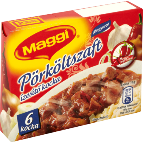 Jódozott só, Pálmazsír (pálmazsír, antioxidáns: rozmaringkivonatok), Burgonyakeményítő, Szárított zöldségek 12% (vöröshagyma, fokhagyma), Búzaliszt, Őrölt fűszerek (pirospaprika 8%, köménymag, fehér bors), Ízfokozó (nátrium-glutamát), Színezék (paprikakivonat), Napraforgóolaj, Savanyúságot szabályozó anyag (citromsav), A %-os értéke
