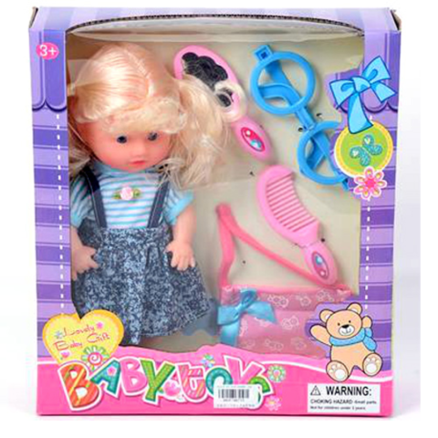 Ez a huszonnyolc centiméteres baba remek választás minden kislány számára, hiszen remekül próbára tehetik magukat a gondoskodó anyuka szerepében. A kis baba szép szőke haja remekül fésülhető, és különféle frizurákat alakíthatunk ki számára. A készletben természetesen találni egy fésűt amivel fésülhetjük a haját, de van kistáska, tükör és egy vastagkeretes kék