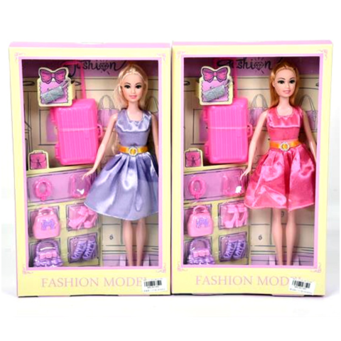 Divatbaba bőrönddel és kiegészítőkkel kétféle változatban 29cm