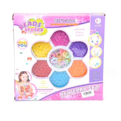 Egy nagyon különleges ékszer készítéshez való gyöngy szettet szerezhetsz be gyermeked számára, aki egyedi ékszereket készíthet általa. A szettben összesen hat féle átlátszó, különböző színű gyöngy található meg, valamint a virág alakú tároló tálca közepén lévő részben pedig szívecske alakú, vegyes színű medálok találhatóak,