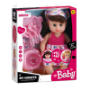 Etethető baba rózsaszín ruhában bilivel és kiegészítőkkel, hanggal
