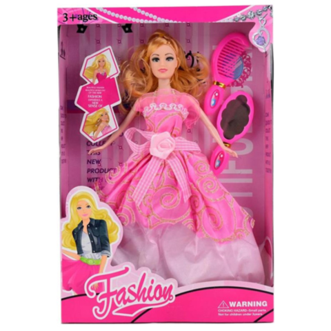 Fashion divatbaba rózsaszín báli ruhában kiegészítőkkel 29cm