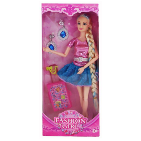 Fashion Girl divatbaba bőrönddel és fülbevalóval 29cm