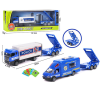 Fém rendőrautó modell vontatmánnyal és járműves kártyákkal 30cm háromféle változatban