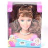 Fésülhető babafej barna hajjal, hajcsavarokkal gyöngy nyaklánccal