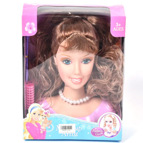 1 kép Magic Toys Fésülhető babafej barna hajjal, hajcsavarokkal gyöngy nyaklánccal