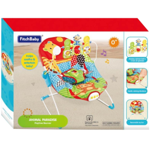 Ez a remek babafotel nem csak, hogy kényelmes, de még szórakoztató is a gyerekek számára. A fotel kialakításának köszönhetően stabilan és biztonságosan tartja a kicsiket, még egy beülős része is van, amivel a legkisebbeket rögzíthetjük benne. A szélei egy foglalkoztató híddal vannak összekötve, melyen a baba számára izgalmas játékok vannak. A beépített el