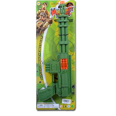 Ezzel a különleges katonai fegyverrel a gyerekek bátran belevethetik magukat a szerepjáték világába, legyen az a szabadban vagy akár a szobában. A fegyver lehetővé teszi, hogy megelevenítsék a kedvenc filmekből ismert izgalmas csatajeleneteket. A fegyver különleges forgócsöves kialakítása valósághűvé teszi a játékélményt, míg a zöld színe tökél