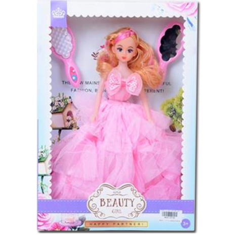 Meseszép ruhában lehet a kislányok kedvenc játékbabája ez a rózsaszín ruhát viselő hercegnő baba, melynek ők maguk készíthetik el a frizuráját. A játékbaba kiegészítőkkel együtt érkezik a dobozban, így a frizura elkészítéséhez hajkefét és tükröt is használhatnak. A fodros rózsaszín ruha eleje hatalmas masnival díszített, valamint a baba rózsaszín fejpántot is vi