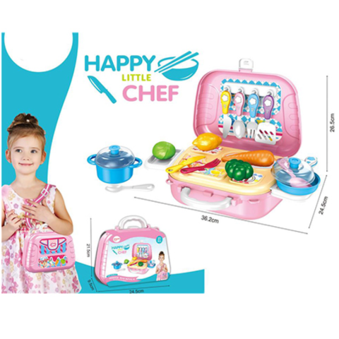 Hordozható pink játékkonyha készlet bőröndben 21db-os szett