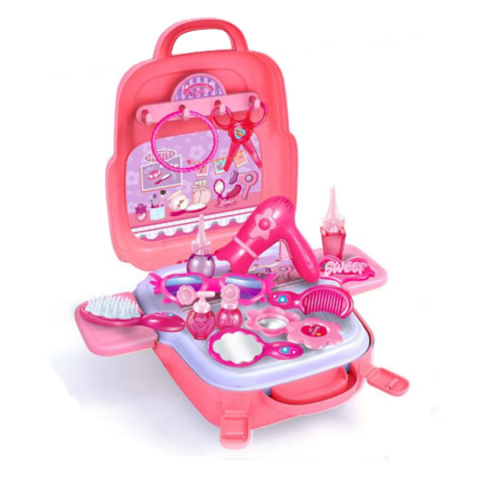 Egy igazán különleges szettet szerezhetsz be gyermekednek, mellyel sok vidám pillanatban lehet része. A szett egy pink hordozható kézitáskában érkezik, ami könnyen lehet kezelni, belül pedig rengeteg különböző kiegészítő található, melyekkel szépítkezhet gyermeked. A szettben hajszárítót, fésűket, tükröt, játék ollót, szemüveget és egyéb tárgyakat tartalmaz,