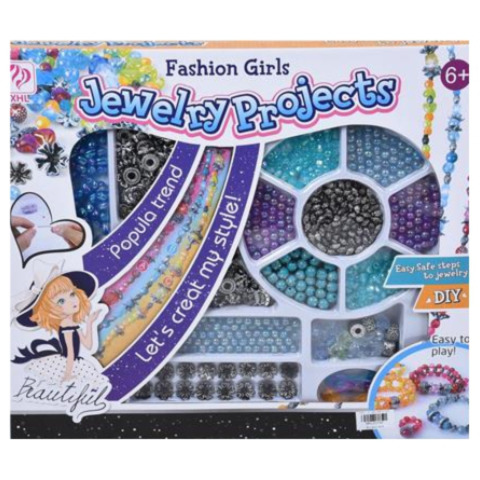 Ezzel a fantasztikus nagy ékszerkészítő szettel hidegebb színárnyalatú, kékes és lilás kiegészítőket készíthet gyermekünk.