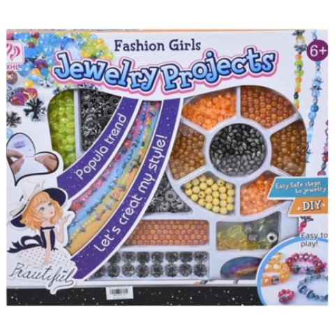 Igazán lenyűgöző ékszereket, nyakláncokat és karkötőket készíthetnek kicsik és nagyok ezzel a fantasztikus Jewelry Project DIY nagy ékszer készítő szettel, melyben narancssárgás árnyalatú gyöngyök vannak.