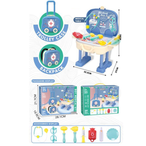 Kék 2az1-ben játék orvosi szett gurulós bőröndben
