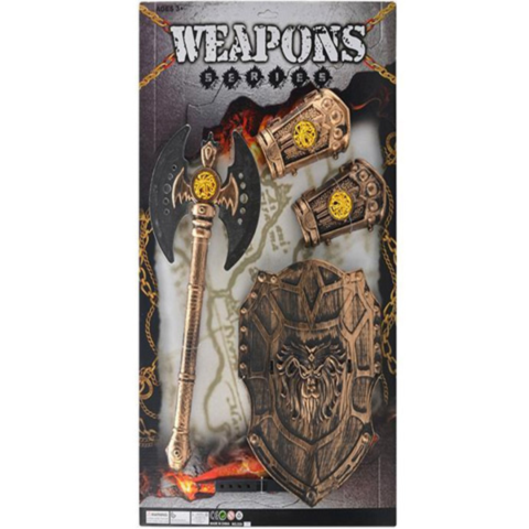 Egy részletgazdag kidolgozottsággal rendelkező középkori bárdot, pajzsot és kézfejvédőt szerezhetsz be gyermeked számára és a készlet segítségével egy szempillantás alatt középkori hős harcossá változat át. A középkor izgalmas történetei megmozgatják a gyermekek fantáziáját amely készségfejlesztő hatással bír és mozgásra ösztönöz. A sze