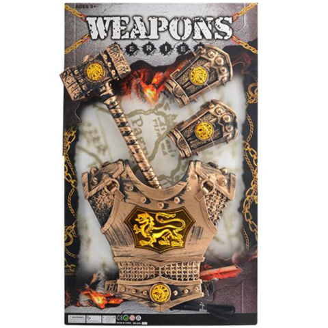 Ebben a 4db-os középkori harcos felszerelés játékszettben gyermeked minden olyan kiegészítőt megtalálhat, amelyek egy vérbeli harcossá varázsolhatják őt egy szempillantás alatt. A szettben részletgazdag kidolgozottsággal rendelkező kalapács, pajzs és kézfej védő is megtalálható amelyek használatával azonnal megkezdheti a játékot. A középkor izgal