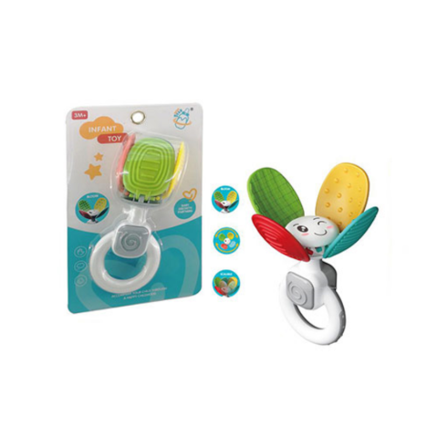 A csörgők a legkisebbek számára nagyon érdekes játéknak számítanak, amelyek lefoglalják figyelmüket és kíváncsian figyelik a hangot kiadó játékot. Ebben az esetben egy napraforgó alakú csörgőről van szó, amely a 3 hónapos bébiknek egy kiváló játék lehet. A termék négy szirma kinyílik és belül egy mosolygós arcra találunk. Ilyen kinyílt módban a csörgőt forgatni tudjuk
