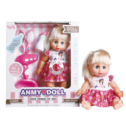 Pisilős baba bilivel, hajszárítóval és kiegészítőkkel