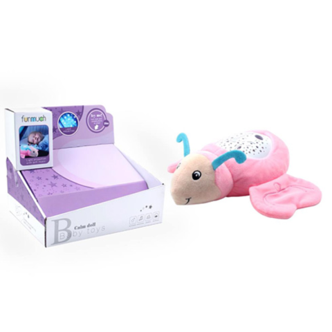 A plüss pillangó a sötétben csillagokat vetít a falra, valamint hanggal is segíti a kellemes pihenést.