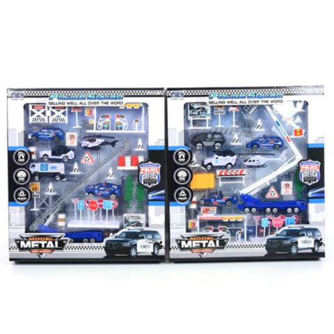 A szettben helikopter, autók, darus kocsik és lezáráshoz használható kerítések, jelzőtáblák találhatóak meg, melyekkel be lehet rendezni akár egy egész