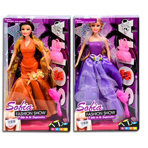 Rendkívül elegáns estélyi ruhában lehet a tiéd Sofia, mely játékbaba a kiegészítőivel együtt rendkívül szórakoztató játékélményt garantál. A lilás vagy narancssárga szín összeállítású ruhát viselő babára nyakláncot helyezhetsz játék közben, valamint magassarkú cipőjét is lecserélheted. A frizuráját a szettben található fés