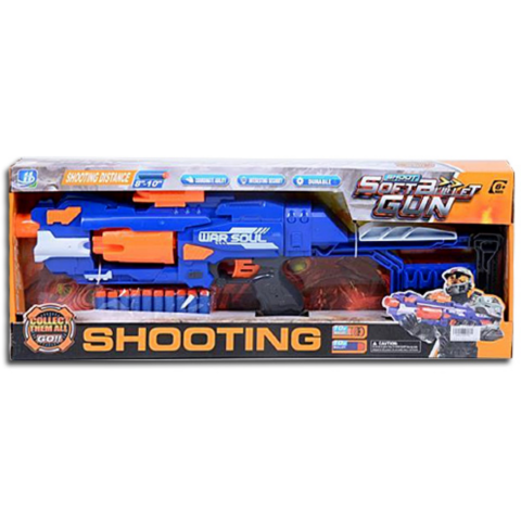 Különleges kialakítású szivacslövő fegyvert tehetnek próbára a gyerekek, hiszen ez a Soft Bullet Gun fegyver forgó tárral rendelkezik, melyben egyszerűen betölthetik a lövedékeket a gyerekek is. A csomag két különböző típusú szivacslövedéket tartalmaz, így a klasszikus mellett tapadókorongos lövedékkel is lőhetnek a kijelölt célra. A Soft Bullet G