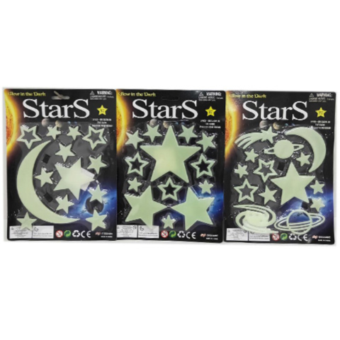 Sötétben világító hold és csillagok háromféle változatban 1db