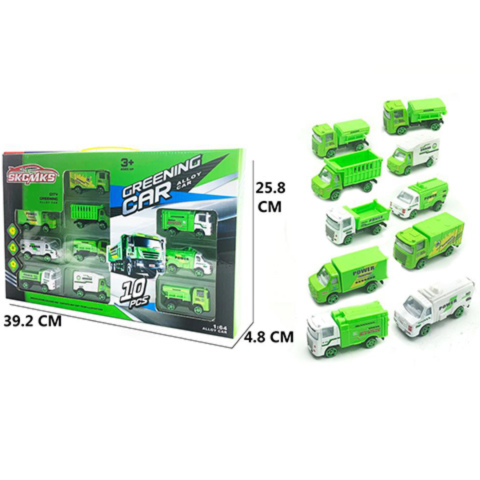 Szelektív hulladékgyűjtő fém kisautók 10db-os szett