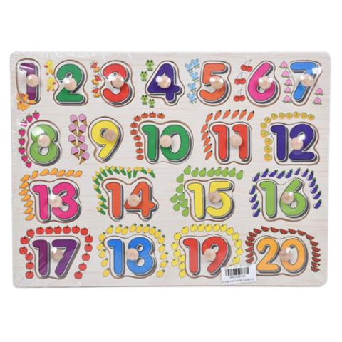 Gyermekeddel szeretnéd megismertetni a számokat? Tedd játékos formában ezzel a szettel, melyben egy fa tábla található meg. Ezen a táblán a különböző számok formái találhatóak meg kivágva fából, így egy formaillesztős játékként működik. Minden szám színes kivitelezést kapott, és a számok mellett különböző gyümölcsök vagy zöldségek is megtalálhatóak a szá