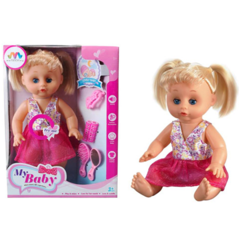 Egy különleges babát szerezhetsz be gyermekednek, mely remek társa lehet majd a mindennapokban. A baba szőke hajat kapott, kék szemekkel, mely nagyon aranyos megjelenést kölcsönöz neki, ezen kívül pedig egy aranyos rózsaszín virágos ruhában érkezik. A baba hasát megnyomva hangot is képes adni, így téve még jobbá a játékot. A babához egy fésű és tükö