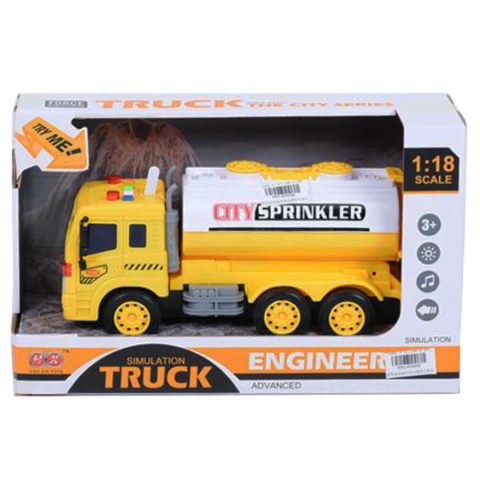 City Truck: Tartályos sárga teherautó fénnyel és hanggal 1/18