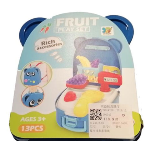 Kisfiad számára most egy különleges szettet hoztunk el, ami biztosan elnyeri majd tetszését, főleg, ha szeret vásárolni. Eben a macifej formájú hátizsákban ugyanis egy zöldséges játékszett található, ami sok lehetőséget tartogat neki a játékhoz. A szettben különböző gyümölcsöket találhatunk, melyek mellett még mérleg és egyéb kiegészítők is megtalálh