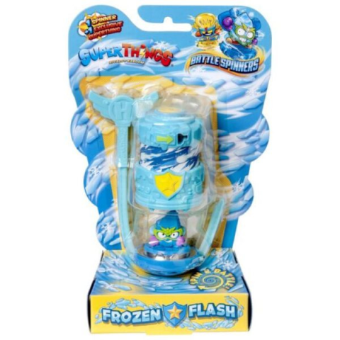A készletek mindegyikében egy pörgettyű található, amelyen egy SuperThing csücsül. A játék használata egyszerű: csak be kell dugni, majd kihúzni a műanyag indítóbotocskát, és máris pörögni-forogni fognak a hősies (vagy épp szupergonosz) tárgyak. Vajon ki marad majd „talpon" tovább?Csomagolás mérete: 7 x 15 x 25 cm