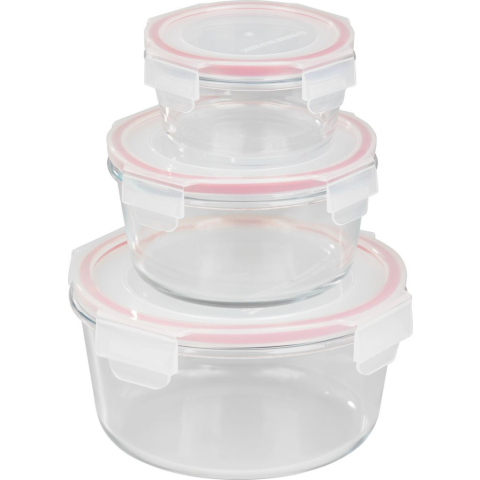 1 kép MagicHome , 3 db-os szett, üveg, kerek alakú, fedővel, 370/800/1500 ml