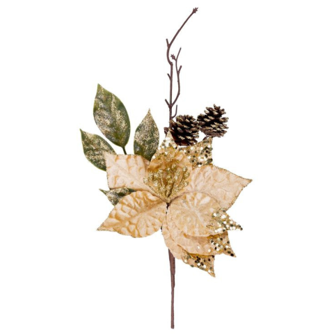 A MagicHome karácsonyi ág mikulásvirággal dekoráció teljessé Poinsettia teszi a karácsony varázslatos hangulatát otthonában. Színe arany. 34 cm magas.