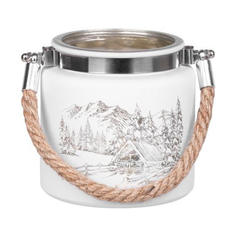 1 kép MagicHome karácsonyi gyertyatartó,10 x 10 cm, fehér, tájképpel, zsinórral