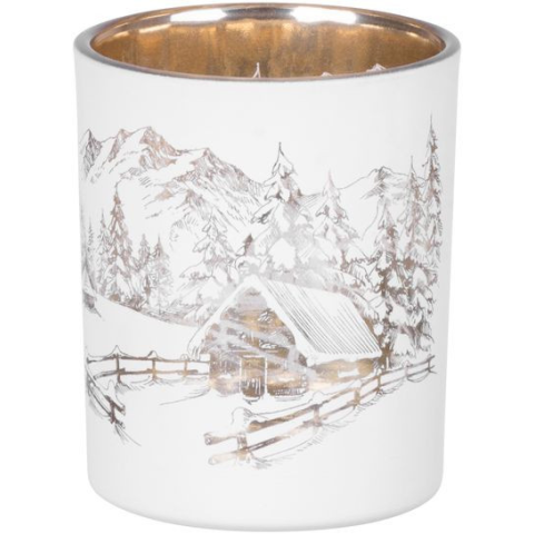 MagicHome karácsonyi gyertyatartó, 6 x 7 cm, fehér, tájképpel karácsonyi dekoráció 1 kép