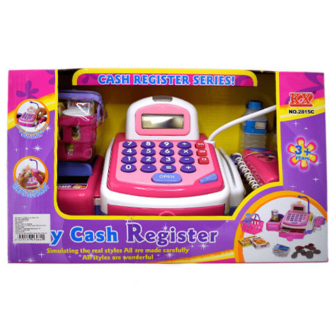 1 kép MagicToys Rózsaszín funkciós elektromos pénztárgép futószalaggal , termékekkel és hanggal