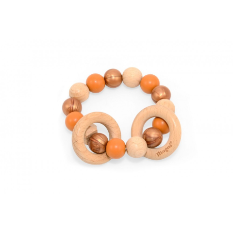 Magni Gyöngyös rágóka szilikonból és fából - arany, narancs - MAGNI