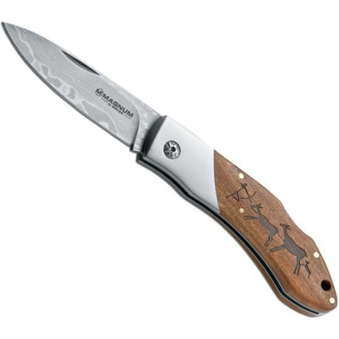 A Magnum Caveman Damascus egy hagyományos zsebkés mindennapi használatra (EDC). Sima pengéjű, 37 rétegű damaszt acélból készül. Manuálisan nyílik egy szöggel a pengén lévő bevágás mögött, és a hátsó zárral rendelkezik. A fogantyú fa, lyukkal ellátott lyukkal és egy őskori vadászati jelenetet ábrázoló barlangkép motívuma.