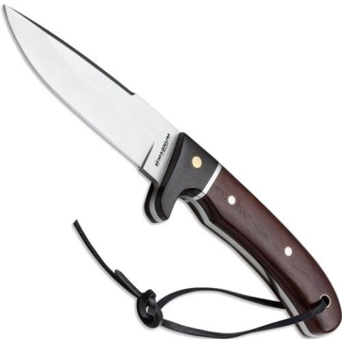 A Magnum Elk vadászkés speciális kiadása lenyűgözi ideális pengehosszával. Az optikát és a funkciót egy 440A rozsdamentes acél pengével ellátott alakú kés jellemzi. A fogantyú ébenfa és tartós rózsafa. Kiváló minőségű bőrkabát.
