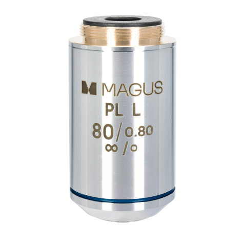 Fémek és ötvözetek szerkezetének vizsgálatára szolgáló, 80x nagyítású objektív. A tartozékot végtelenre korrigált optikai rendszerhez tervezték. Parfokális magassága 45 mm.