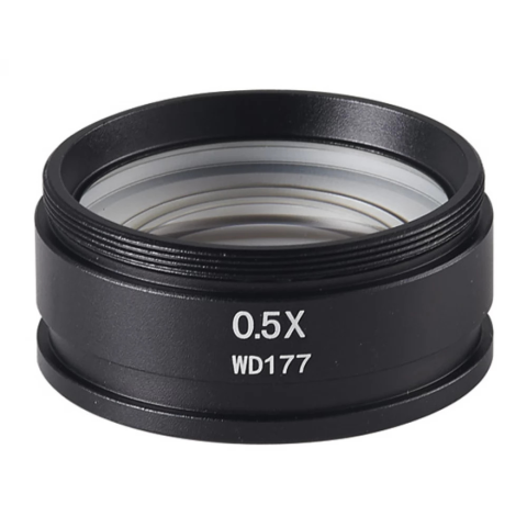 Nagyítás: 0,5x. Munkatávolság: 177 mm A 0,5x segéd objektívlencse növeli a sztereoszkópikus mikroszkóp munkatávolságát és látómezejét, de csökkenti a mikroszkóp teljes nagyítási fokát. Forrasztás, gravírozás, szétvágás, valamint bármely egyéb anyagkez