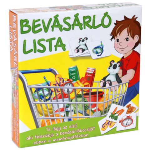 Ennek a játéknak a lényege a bevásárlás. Szórakoztató fejlesztő játék. A játék célja: telerakni a kiválasztott bevásárlókocsit a listán lévő képekkel. A játék menete: az asztalra lefordított kártyák közül húzni, a játékostársak számára is megmutatni, ha rajta van a listánkon beletenni a kosarunkba, vagy lefordítva visszatenni az asztalra.