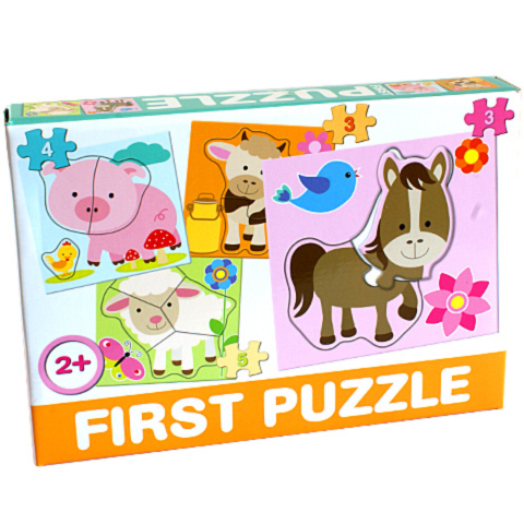 Akár malacot, tehenet, bárányt vagy szamarat is kirakhatnak a gyerekek a bébi puzzle elemekből, melyeknek különlegessége, hogy mindössze néhány elemből állnak. A karton dobozban a kemény elemek találhatóak, melyek élénk színűek és használat közben fejlesztik a kicsik megfigyelőképességét, logikáját és kézügyességét is. Rakd ki a puzzle háziállatokat és tudj meg róluk mi