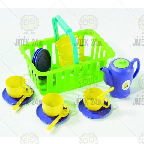 Játszd el álmaid kirándulását! Most ezzel a készlettel saját magad is eljátszhatsz egy kellemes piknikezést a füves réten. Pakold be a legfinomabb élelmiszereket a kosárkába, vagy vidd magaddal a komplett garnitúrát a csészékkel és a kiöntővel. A készlet alkalmas rá hogy meghívd a barátnőidet is így akár már hárman is tudtok egyszerre játszani. Vigyázzatok, mert a készlet forró italok t