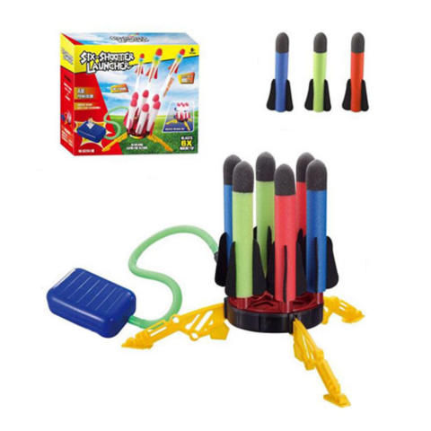 A gyerekek, főleg a kisfiúk akik a pisztolyokat, puskákat kedvelik nagyon örülnének egy ilyen kiváló játéknak, amely egy szivacsrakéta kilövő szett. A játék lényege, hogy van egy állvány amelyre szivacsrakétákat tehetsz fel. Ez az állvány egy pumpával van összekötve és amikor erre rálépünk, kilő egy szivacsrakétát, amelyik a levegőbe száll. Ezzel a szettel a játszás nagyon ér